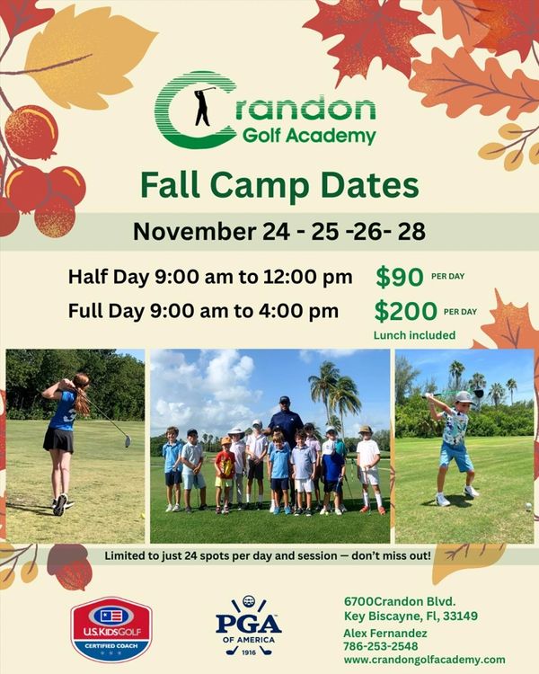 The Crandon Golf Academy will be hosting Thanksgiving camp. We will have a daily camp, make sure to register ahead of time. We will have 24 spots available every day.